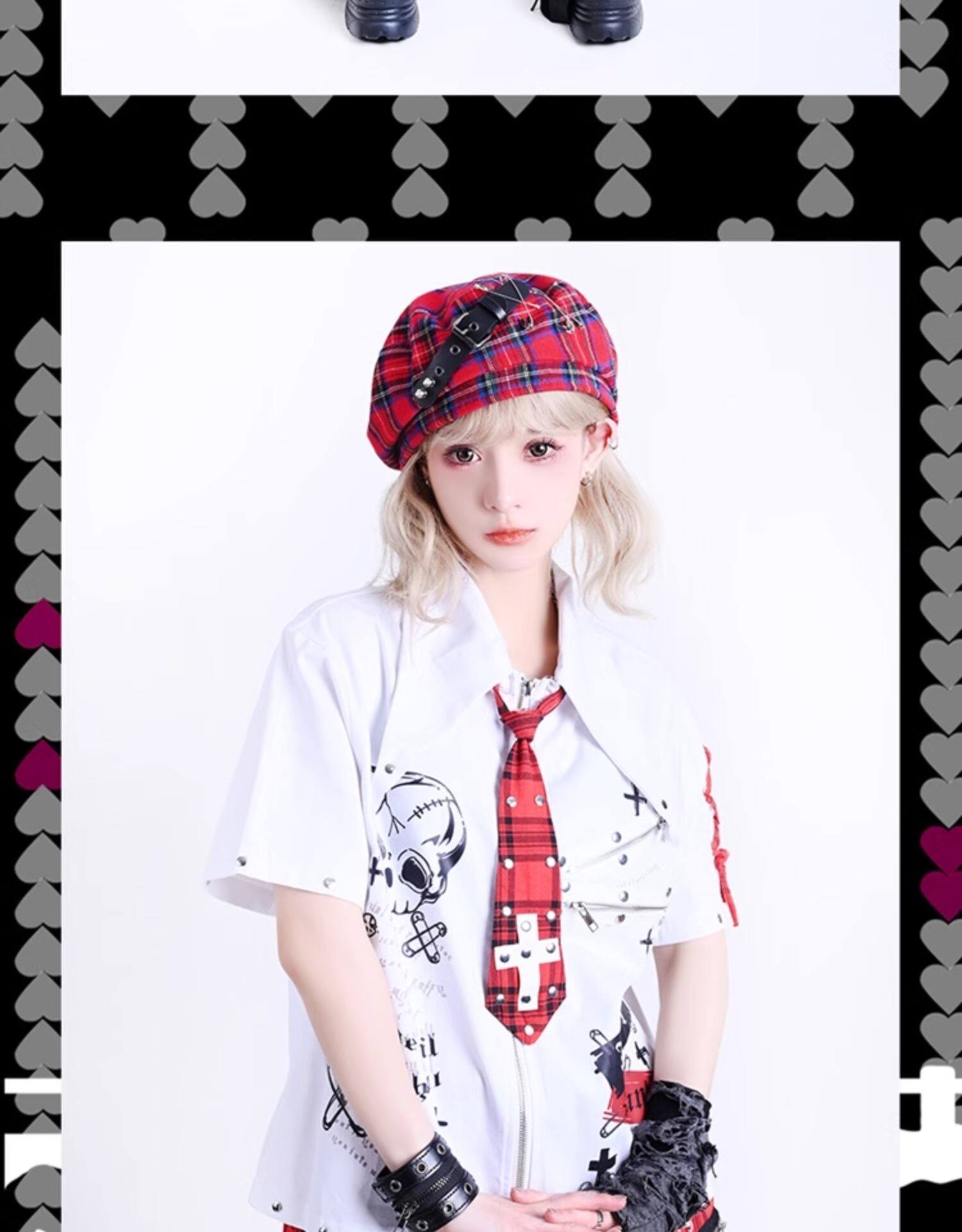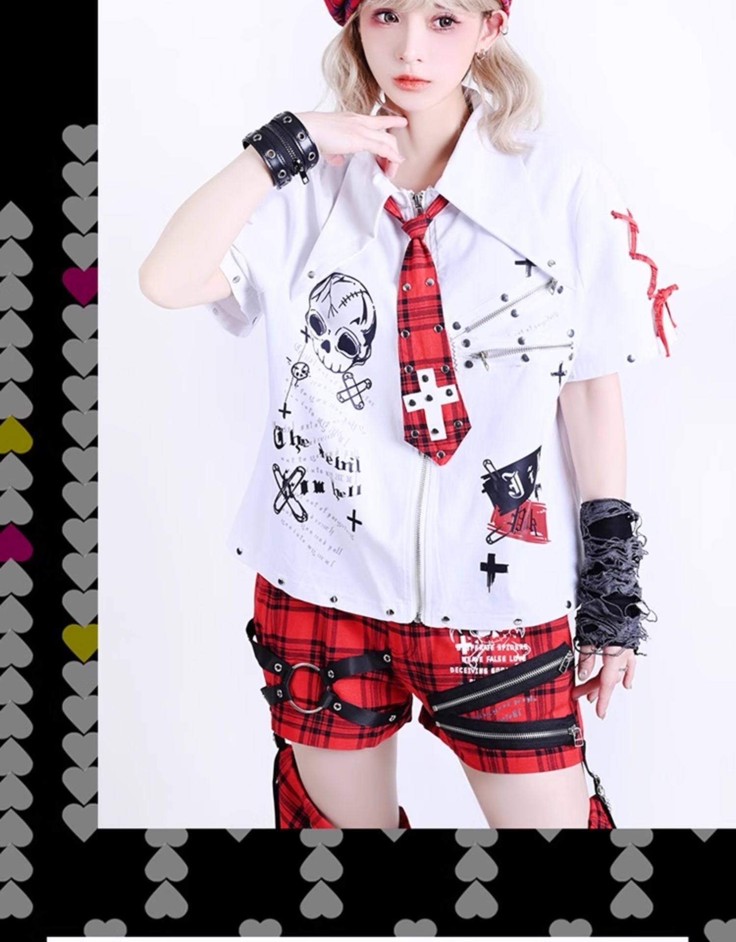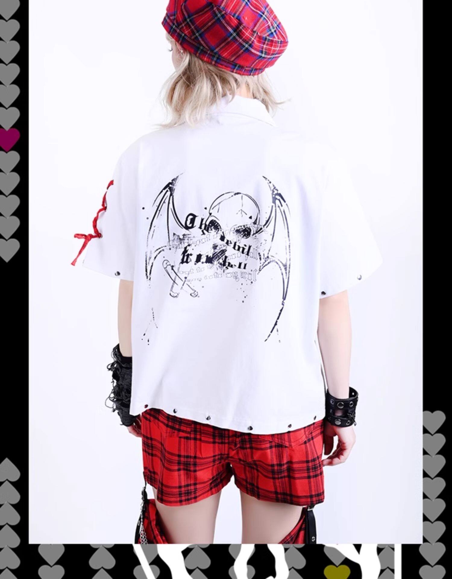 2025 Summer Womens Kill Matt Rock Punk Mens Clothes Japanese Graffiti Skull Clothing Rivet skull pattern short-sleeved shirt