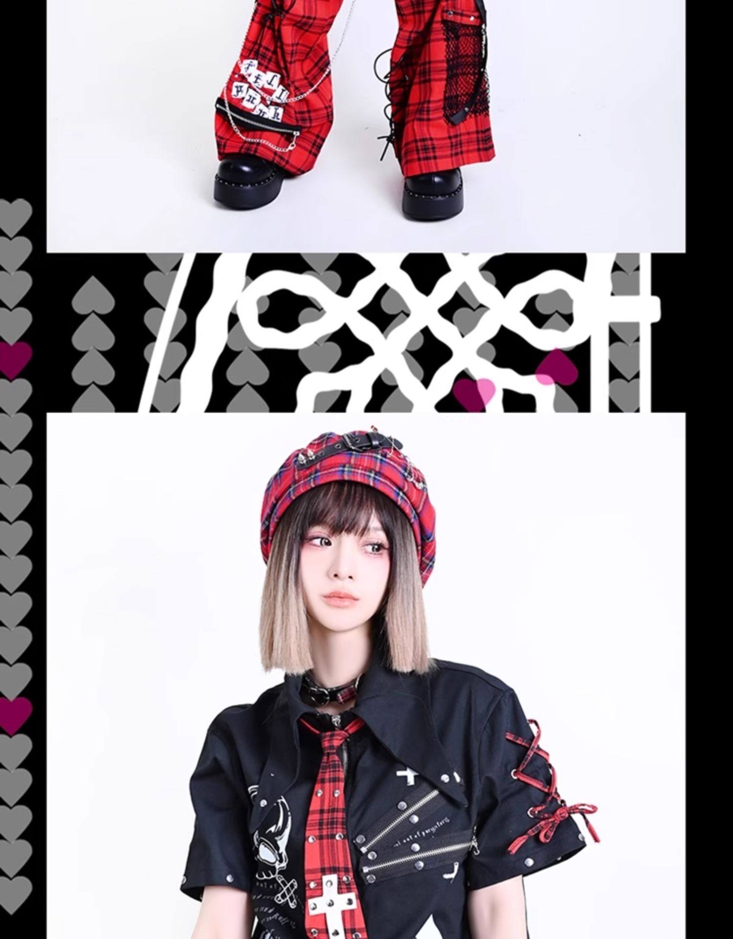 Add To Cart Este producto tiene múltiples variantes. Las opciones se pueden elegir en la página de productoVintage Graffiti Plaid Shirts Mens Double-faced Short Sleeve Shirt for Men Streetwear Hip Hop Punk Loose Casual Blouse Male