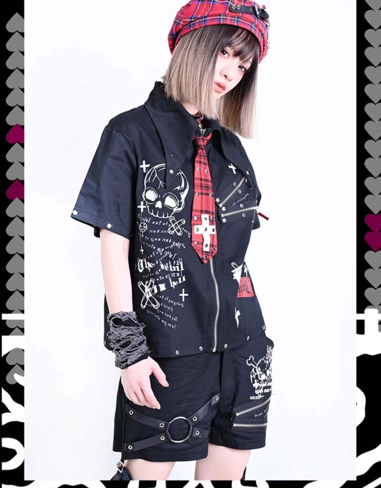 Be the first to review “2025 Summer Womens Kill Matt Rock Punk Mens Clothes Japanese Graffiti Skull Clothing Rivet skull pattern short-sleeved shirt” Cancelar la respuesta